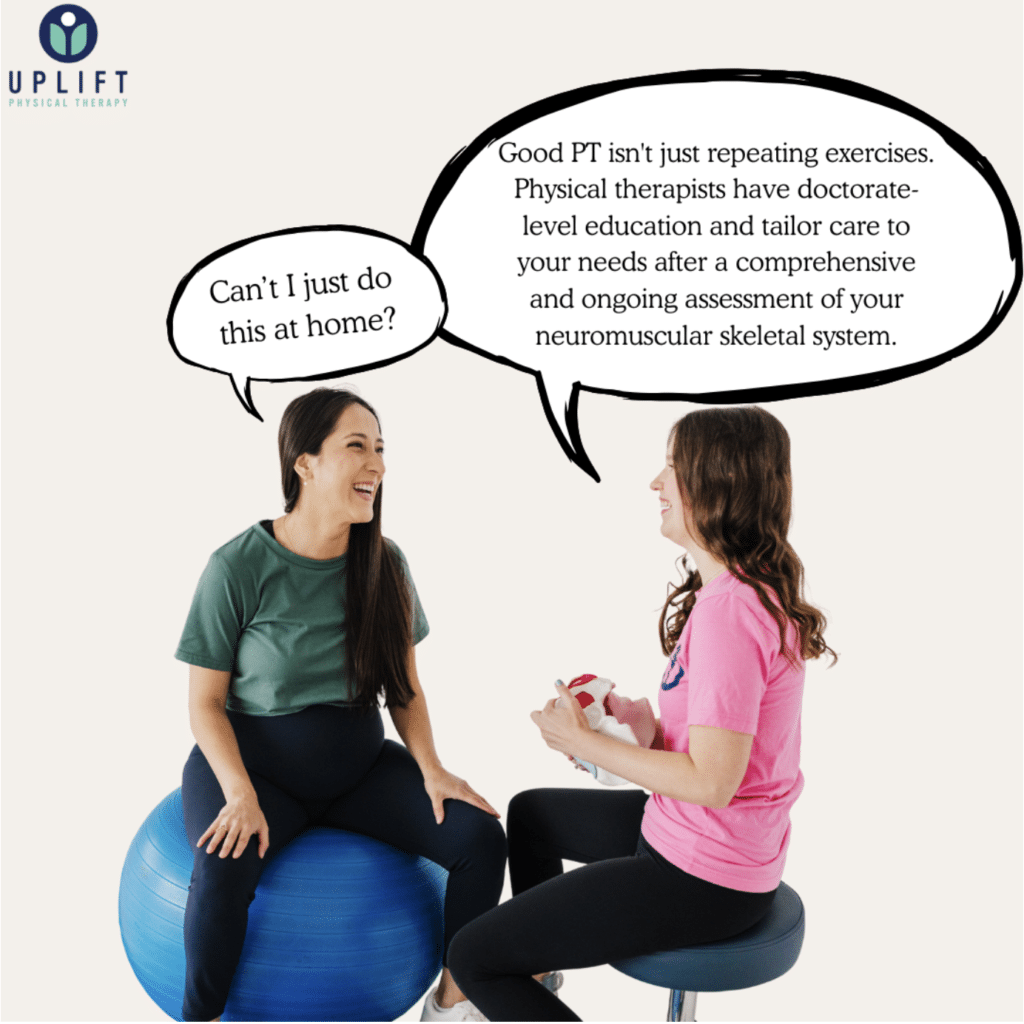 “Pelvic floor therapy can seem scary at first, but at Uplift, you control your care, and your comfort is our priority. Nothing happens unless you’re comfortable and on board with planning your care. We ensure that all assessments are thoroughly explained beforehand, and your privacy is always protected. With me, expect sessions focused on your goals: engaging, informative, and activity-based”.