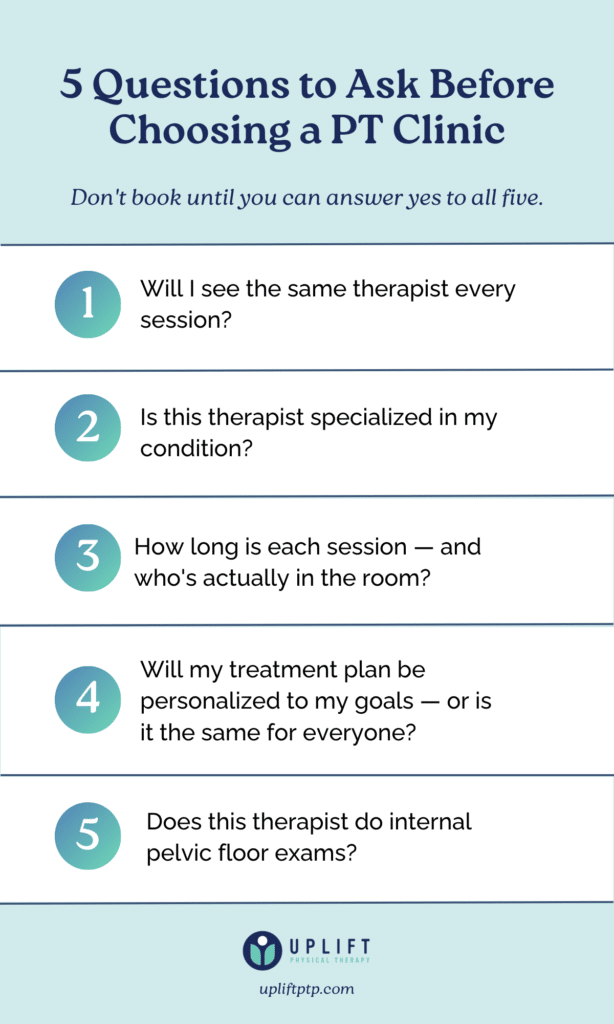 - All providers are doctoral-level DPTs with advanced pelvic health training